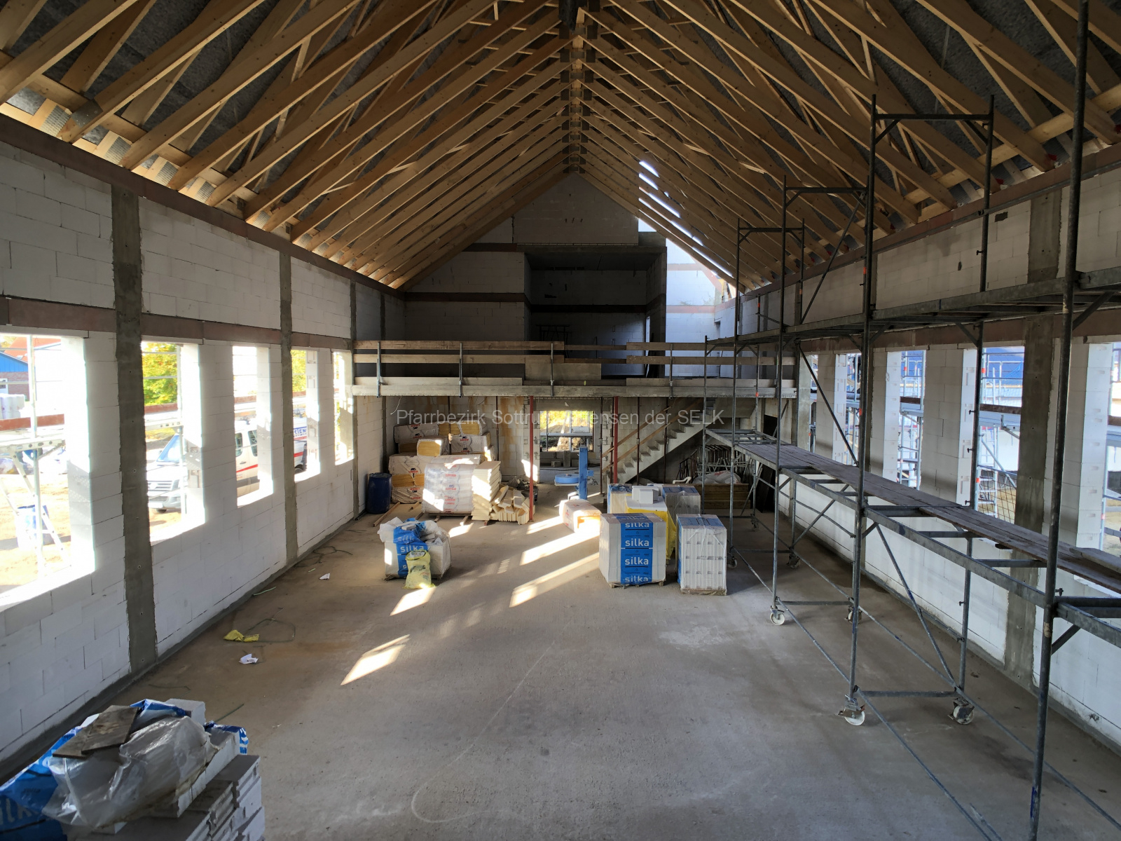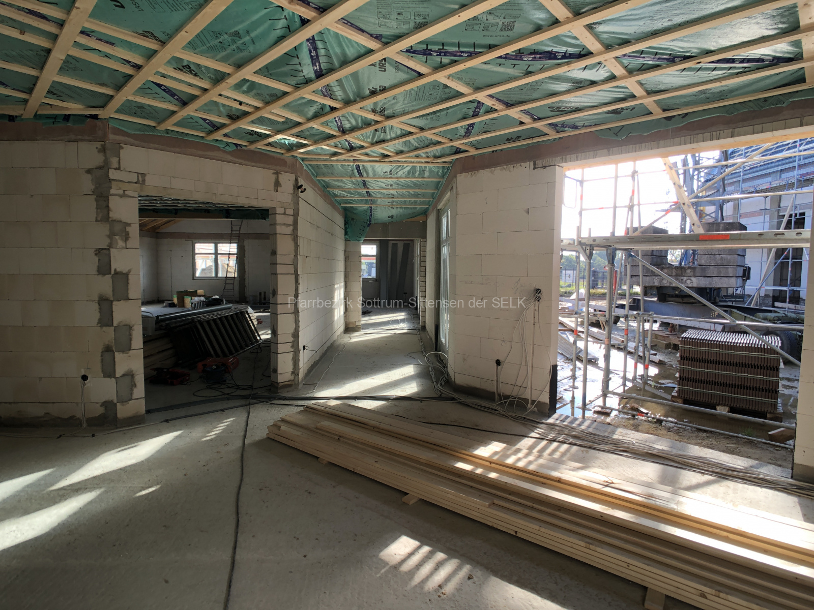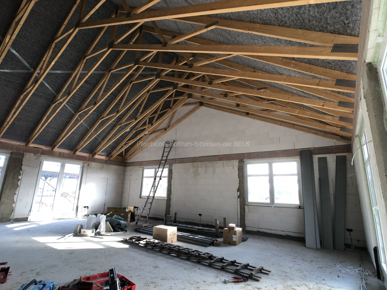 Die Gemeinderäumlichkeiten haben ein gedecktes Dach und sind auch schon in puncto Innenausbau gut vorangeschritten.