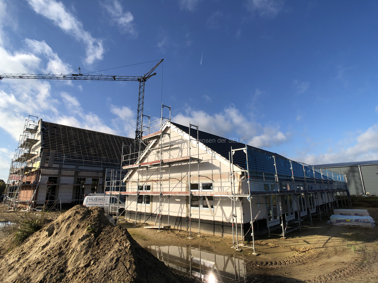 Das Kirchenschiff ist im Innern noch nicht so weit vorangeschritten, da wir dies als zweiten Bauabschnitt in Angriff nehmen. Dafür ist außen umso mehr passiert. Die Maurer waren fleißig und haben den Turm hochgemauert und bereits verklinkert. Ebenso der Giebel wie auch die Längsseite sind bereits mit Klinker versehen, welcher dem Gebäude noch mal mehr einen ehrwürdigen Eindruck verleiht.