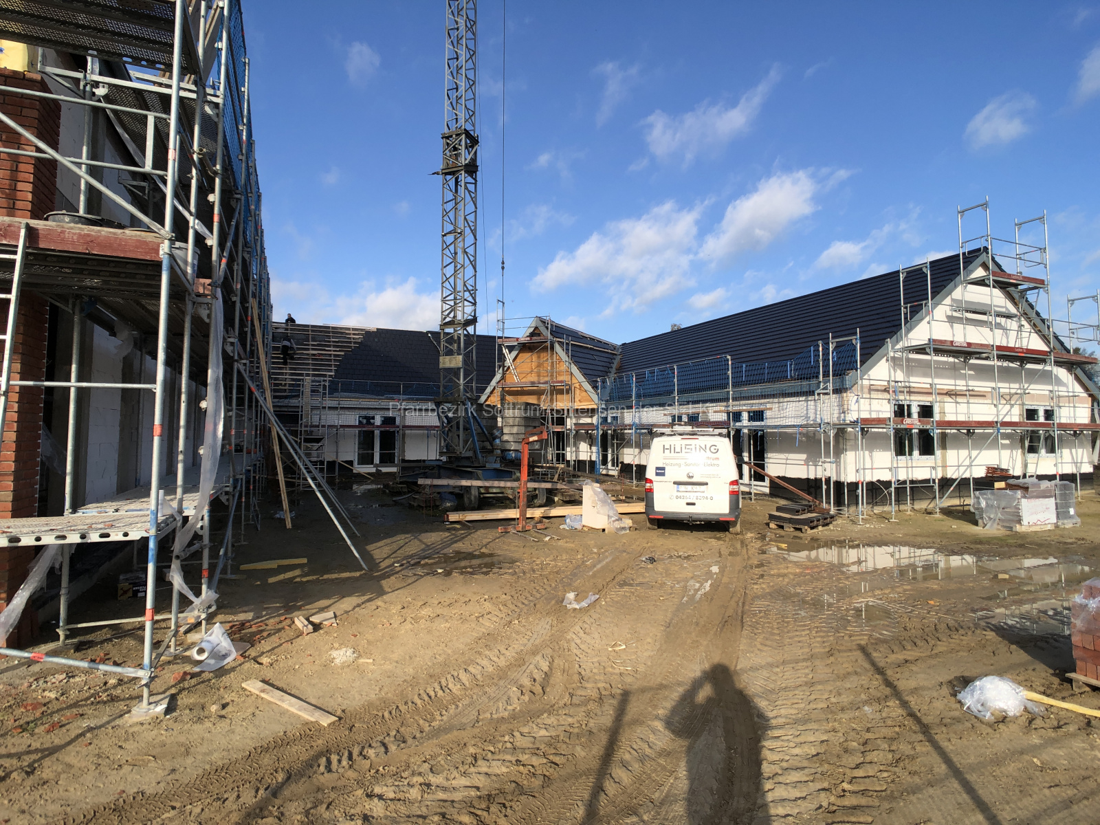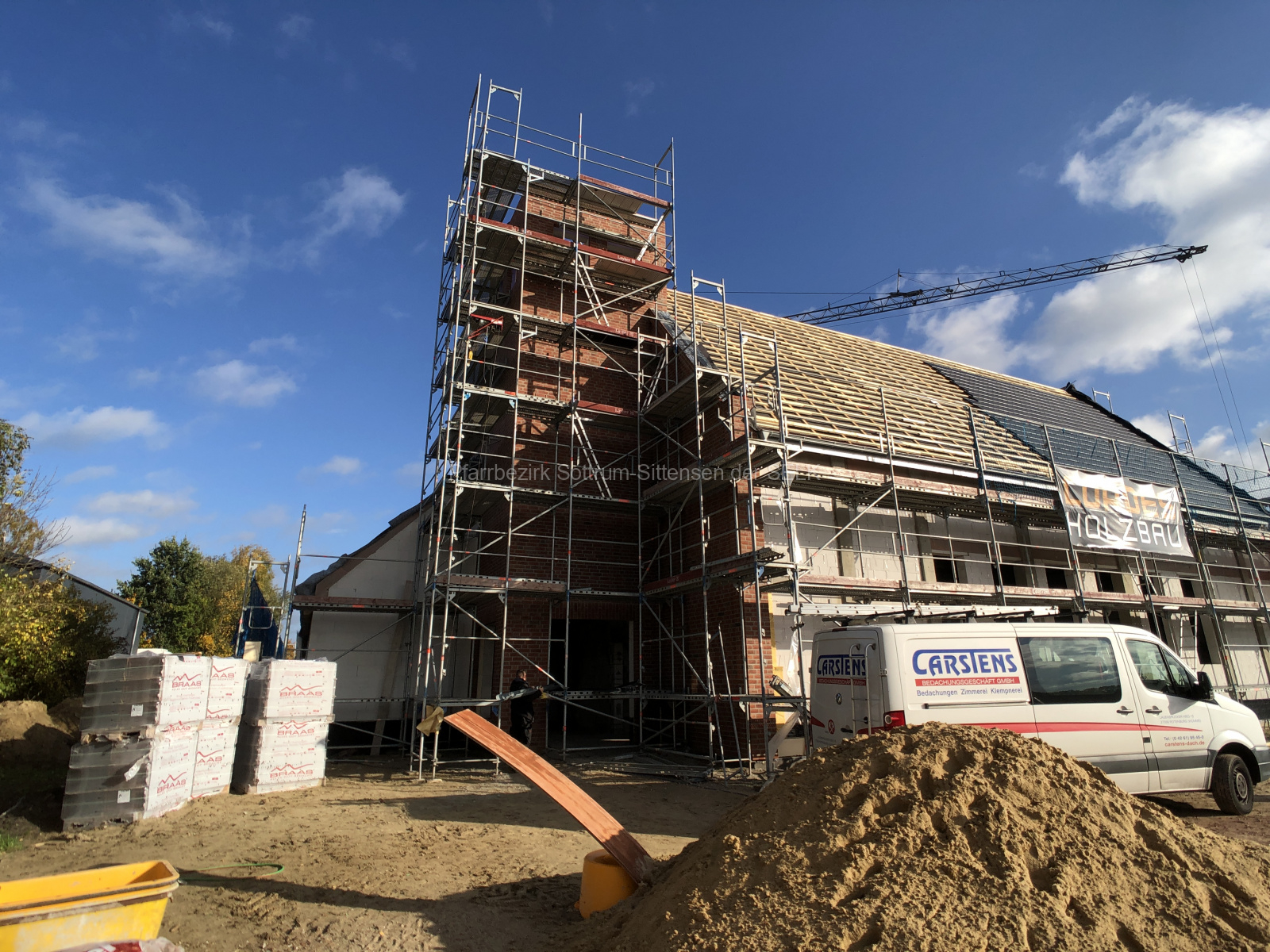 Einziger Schönheitsfehler an diesem wundervollen sonnigen Tag war, dass das Gerüst etwas zu nah am Turm befestigt war und so das Dach etwas touchierte, was jedoch im Nachgang durch die Dachdecker ohne Probleme behoben werden kann.